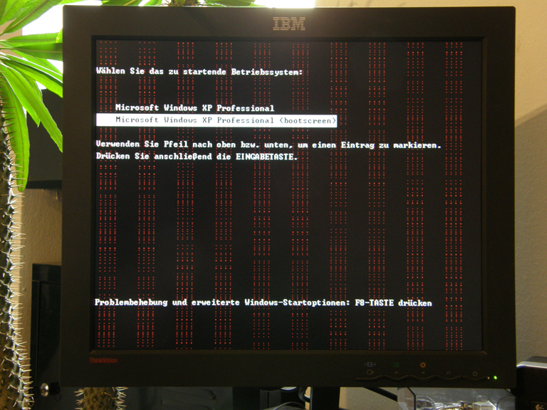 Habe seit heute Nachmittag das Problem, dass meine Grafikkarte während ich was gezockt habe ausgestiegen ist. Leider hat ein Reboot das Problem nicht behoben. Meine Grafikkarte funktioniert nur noch mit 640 * 480 und 8 Bit. Sobald ich höher schalte funktioniert die Anzeige nicht mehr. Das Problem beginnt schon beim Booten (siehe Screenshot).