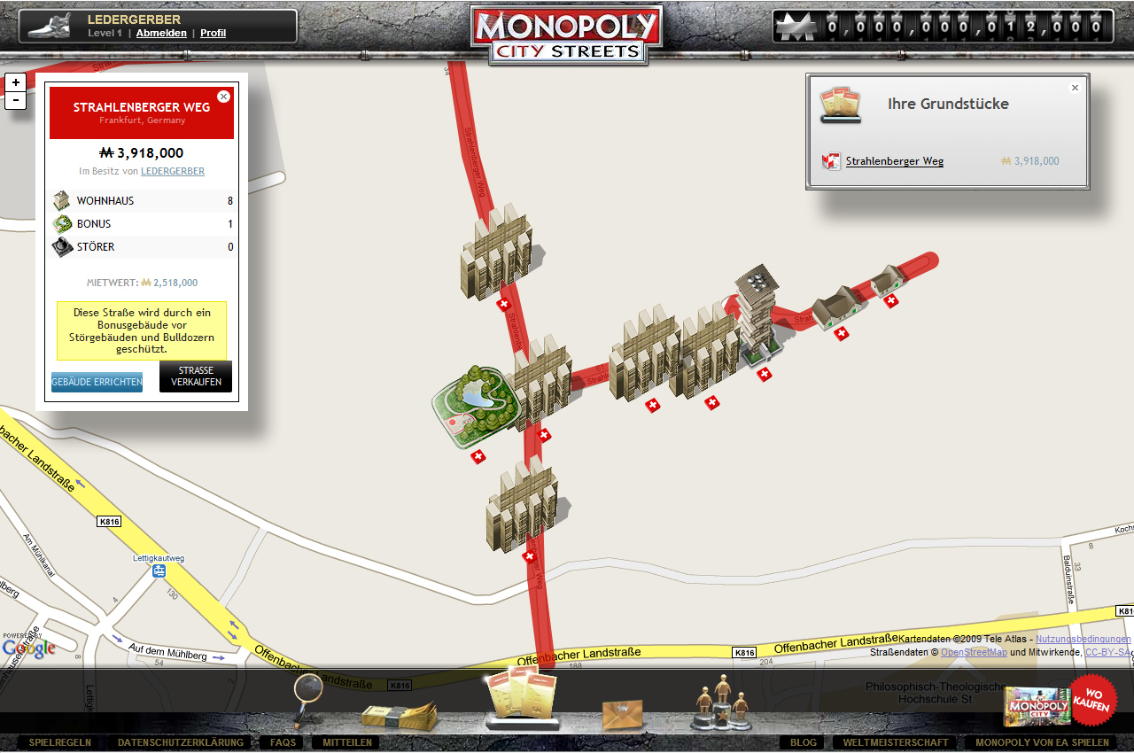 Was passiert, wenn man das Brettspiel Monopoly mit Google Maps, Tele Atlas und Openstreetmap zusammenwürfelt? Die Antwort ist Monopoly City Streets, ein Spiel, das weltweit ausgetragen wird - und eine Mischung aus Faszination und Langeweile auslöst.