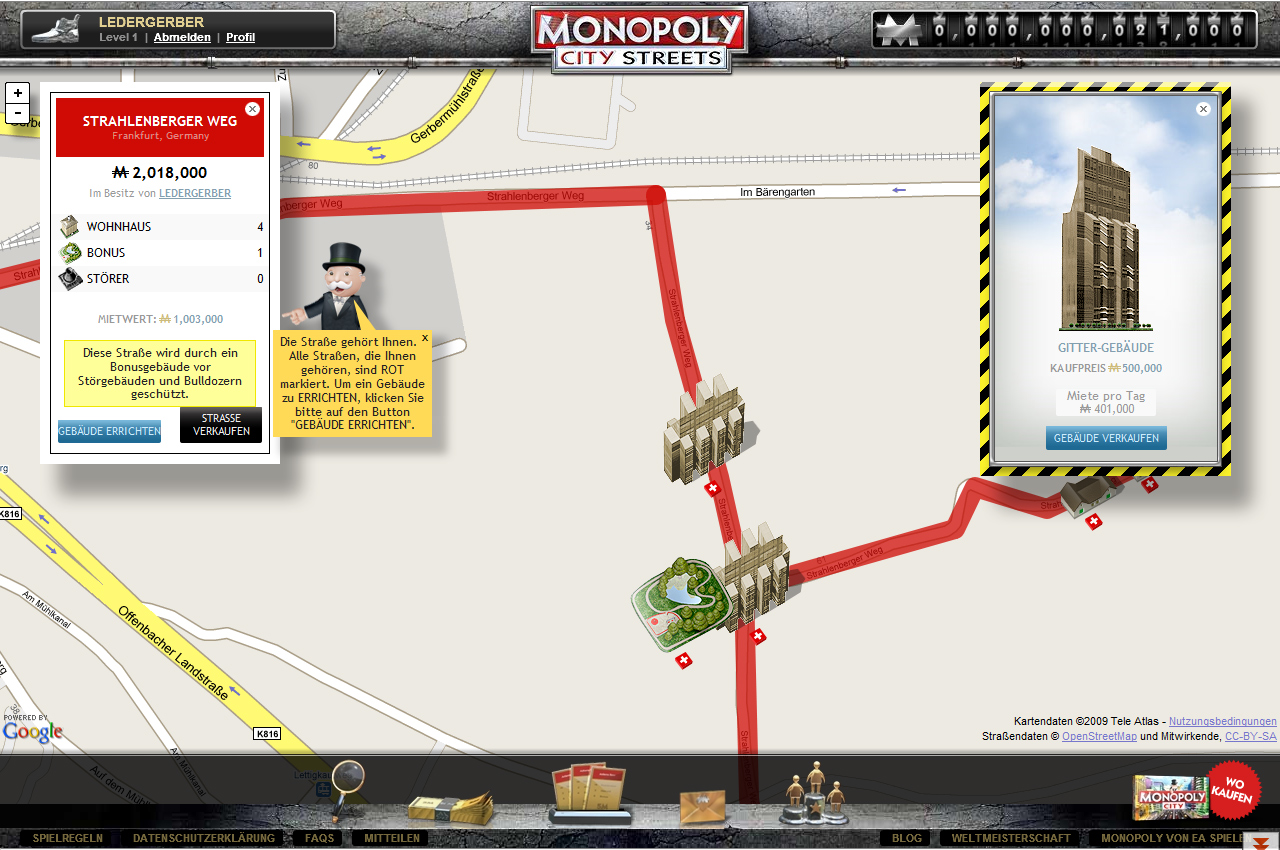 Was passiert, wenn man das Brettspiel Monopoly mit Google Maps, Tele Atlas und Openstreetmap zusammenwürfelt? Die Antwort ist Monopoly City Streets, ein Spiel, das weltweit ausgetragen wird - und eine Mischung aus Faszination und Langeweile auslöst.